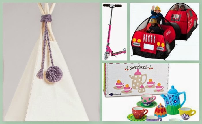 - Para niños más mayores: mi selección es...una tienda de campaña para correr sus aventuras, un mono-patín para no parar, una carpa de camión de bomberos y varios kits de pintura (para desarrollar su habilidades prácticas). ¡Todo me encanta!.