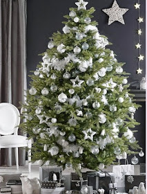 4. Árbol en tonos blancos y plateados: de todos los estilos que os he presentado este es sin duda el que más me gusta. Sencillo a la par que elegante.